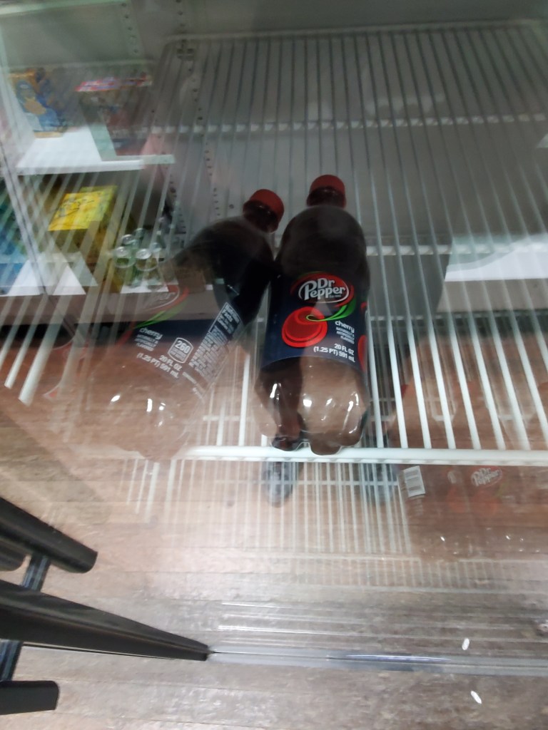 While stocking up on food and treats inside the store, I spotted a few bottles of Cherry Dr. Pepper, which is my favorite soda and a great pick-me-up. Awesome!