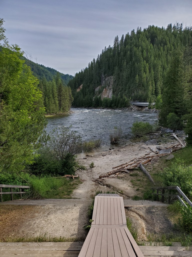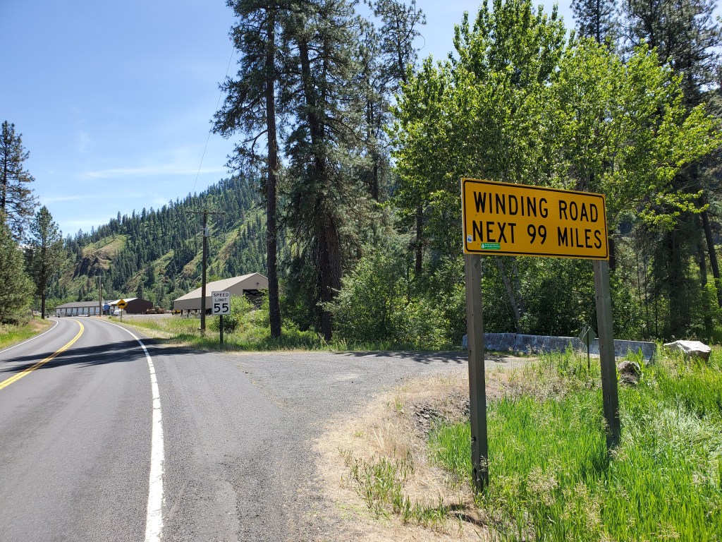 The climb up Lolo starts not long outside of Kooskia, beginning with a famous sign that says “Winding road, next 99 miles”. I turned my music on and settled in for the long haul. My only job for the rest of the day was to climb up a shallow slope for approximately 85 of those 99 miles. The entire pass looked the same: a winding road next to a roaring river on the right and a cliff towering above us to the left, with thick pine trees all around and no towns. We kept a good steady pace, and luckily the good weather held. The temperature was in the mid to upper 70s and felt extra pleasant with the addition of a light breeze coming off the river that carried refreshing little droplets of mist.